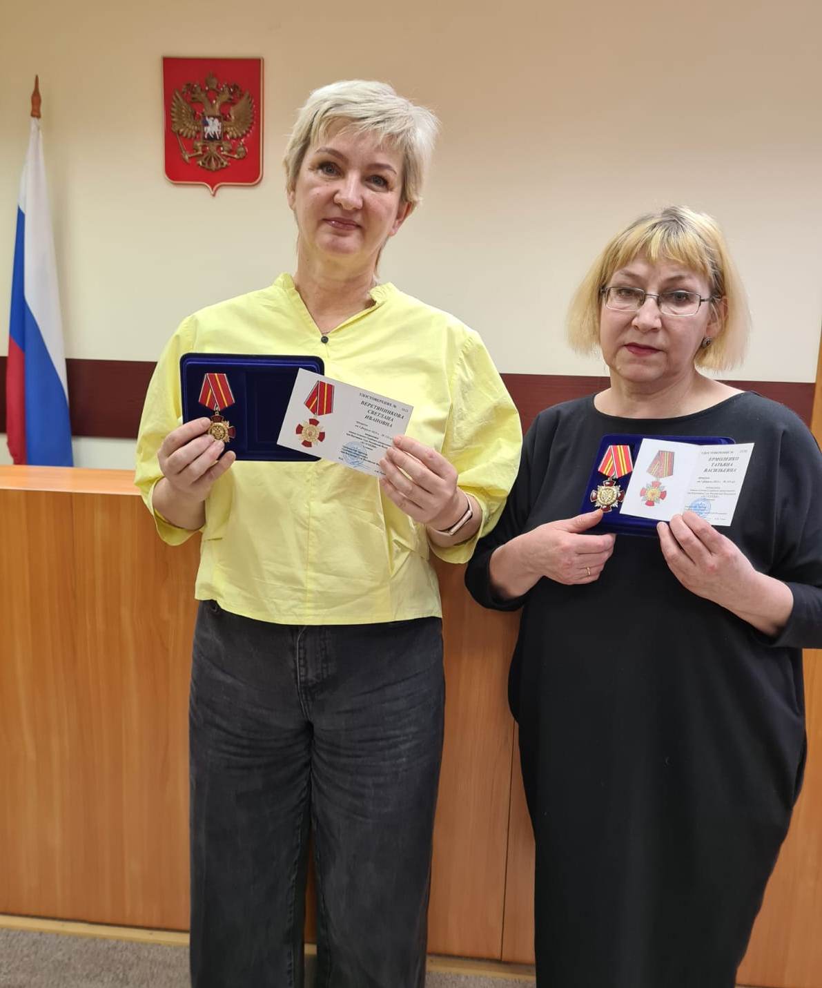 Сегодня, 3 декабря, в торжественной обстановке председатель Верхнекамского районного суда Кировской области Елена Валерьевна Боровикова поздравила коллектив суда с профессиональным праздником – Днем юриста и вручила заслуженные награды за значительный личный вклад в развитие судебной системы, всестороннее содействие в укреплении и совершенствовании правосудия в Российской Федерации. Знак отличия Судебного департамента при Верховном Суде Российской Федерации «За усердие» II степени вручен секретарю суда обеспечения судопроизводства по гражданским делам Ермоленко Татьяне Васильевне, имеющей стаж работы в суде 34 года. Знак отличия Судебного департамента при Верховном Суде Российской Федерации «За усердие» I степени вручен секретарю судебного заседания Веретянниковой Светлане Ивановне, имеющей стаж работы в суде 31 год.
