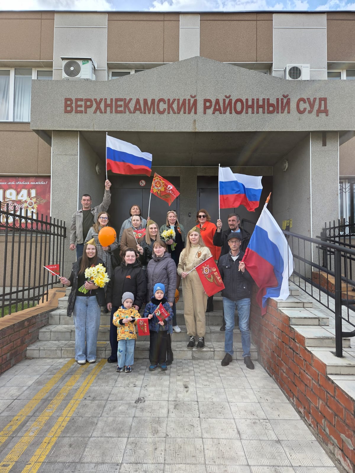 Верхнекамский районный суд Кировской области принял активное участие в прошедшем 7 мая на территории Верхнекамского муниципального округа патриотическом автопробеге «Дорогами Победы», посвященном празднованию 80-летия Победы в Великой Отечественной войне. Автомобили, украшенные флагами и юбилейной символикой 80-летия Победы, проехали по улицам города Кирса до Братской могилы, где участники автопробега возложили цветы, а также почтили память земляков – Героев Советского Союза – Широнина П.Н. и Цылева П.Н.
