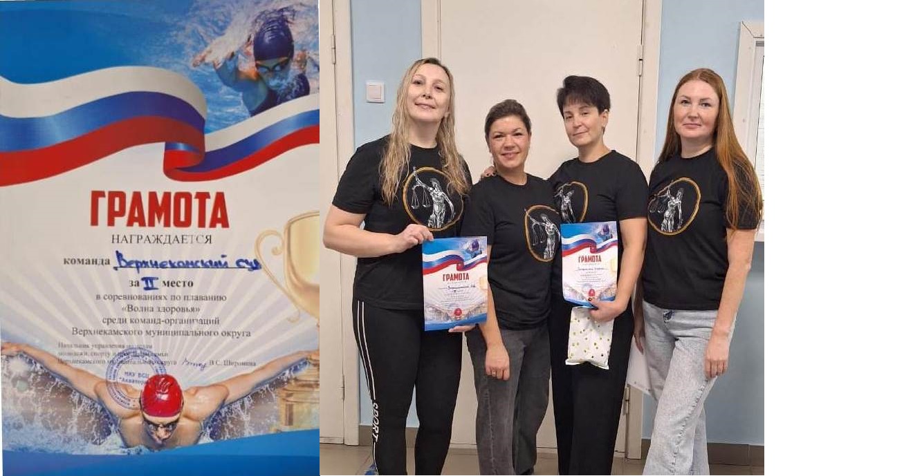 1 ноября 2025 года в МКУ ВСЦ «Акватория» состоялись соревнования по плаванию среди организаций Верхнекамского муниципального округа «Волна здоровья». Команда Верхнекамского районного суда Кировской области приняла участие в спортивном мероприятии и в нешуточной борьбе среди восьми команд стала победителем, заняв II призовое место. Наша команда вновь доказала, что спорт – это самый лучший способ быть сильным, здоровым и целеустремленным.